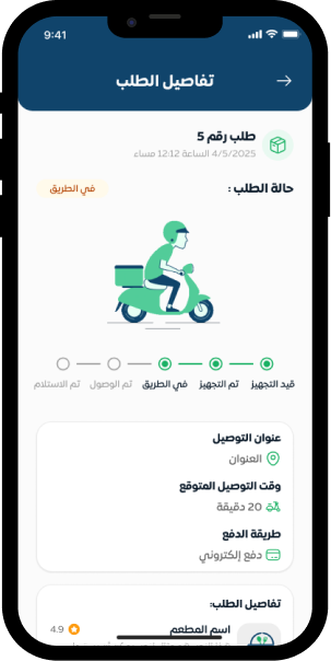 إمكانية متابعة حالة الطلب لحظة بلحظة ومعرفة وقت التسليم المتوقع بكل دقة ووضوح.